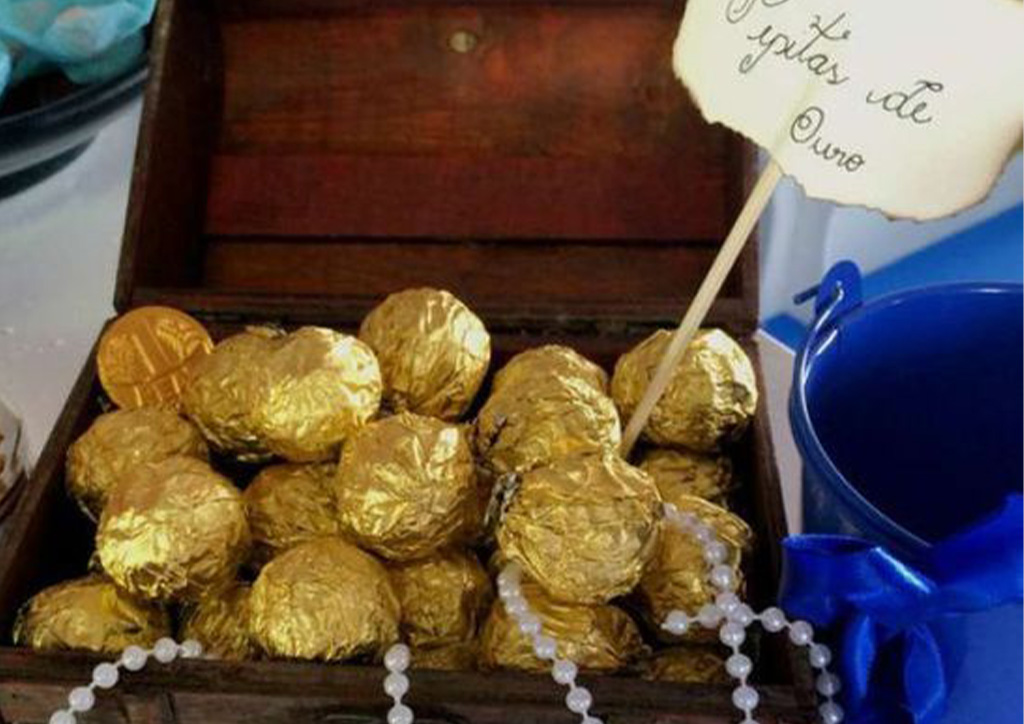 It’ll take a small wooden box, some chocolate coins wrapped in gold, pirate-themed stickers, and plastic. The plastic is just there to hold this DIY giveaway together. For your kid’s pirate-themed birthday party, place the chocolate gold coins in the small wooden box, and slap a pirate-themed sticker on the box before sealing everything in plastic.
