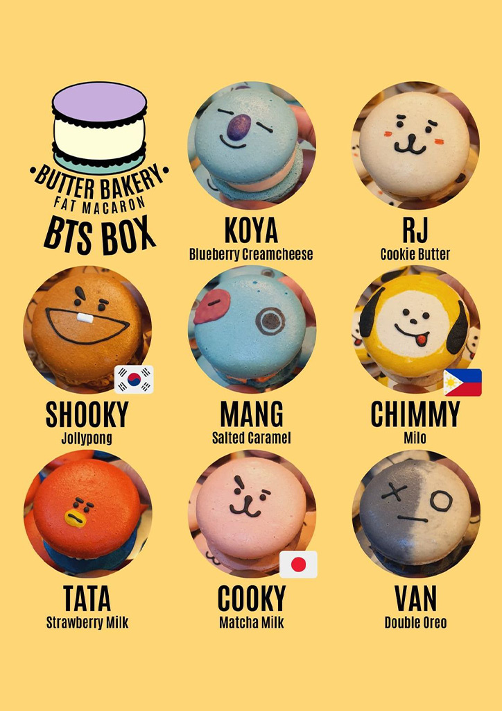 Home of the Korean fat Macaron, Butter Bakery has a variety of designs for macarons. They even have cute faces on them! Their macarons often have fillings like Chocnut, Jellypong, and even Chocolate and Yema to sweeten the deal. The majority of their designs focus more on K-Dramas like Squid Game, so if your teens are into that, they’d probably enjoy some fat macarons to keep the munchies away.