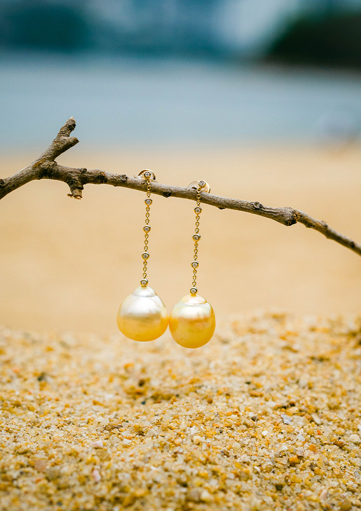 To capture this concept of contrasts and polarity, pieces from the Paradox collection marry opposing elements. Gems in rare colors and flawless cuts, are combined with imperfectly perfect baroque South Sea pearls. It is a union of treasures found in the deepest depths of the earth and ocean. Gold forged by fire is merged with baroque South Sea pearls formed by the tides to create everyday luxuries reflective of the everyday experience of contrasts.