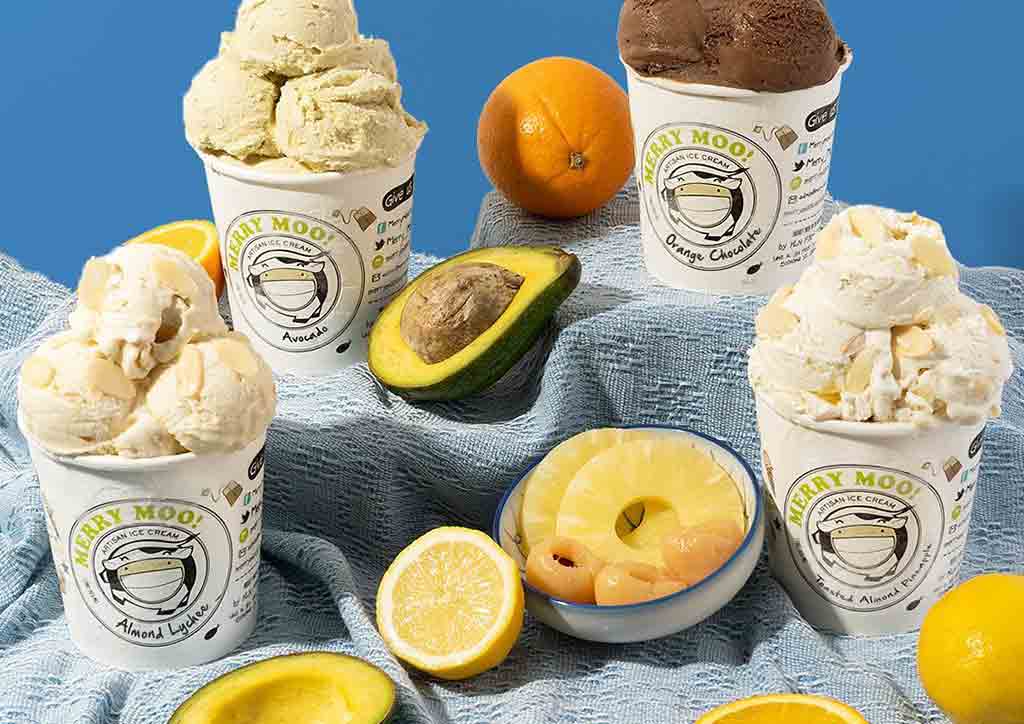 Merry Moo is premium ice cream made fresh using non-UHT (ultra heat treated) dairy, which keeps the milk and cream unaltered, and retains its nutritional content. They churn for creative flavors that aim to excite and delight the taste buds. Since none of us are jet setting off anytime soon, let them take you on an international trip, one scoop at a time by trying their different flavors from all over Asia. Top favorites include Thai Milk Tea, Almond Lychee, and White Choco Green Tea!