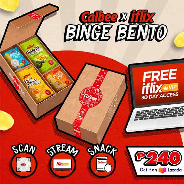 And now for the awesome news: your go-to streaming subscription site, iFlix has partnered up with the good people of Calbee to bring you the #CalbeeXiFlix Binge Bento Box! We’re talking a limited-edition bento box that has not one, but six bags of Calbee potato chips for only P240 complete with 30-day VIP iFlix access.