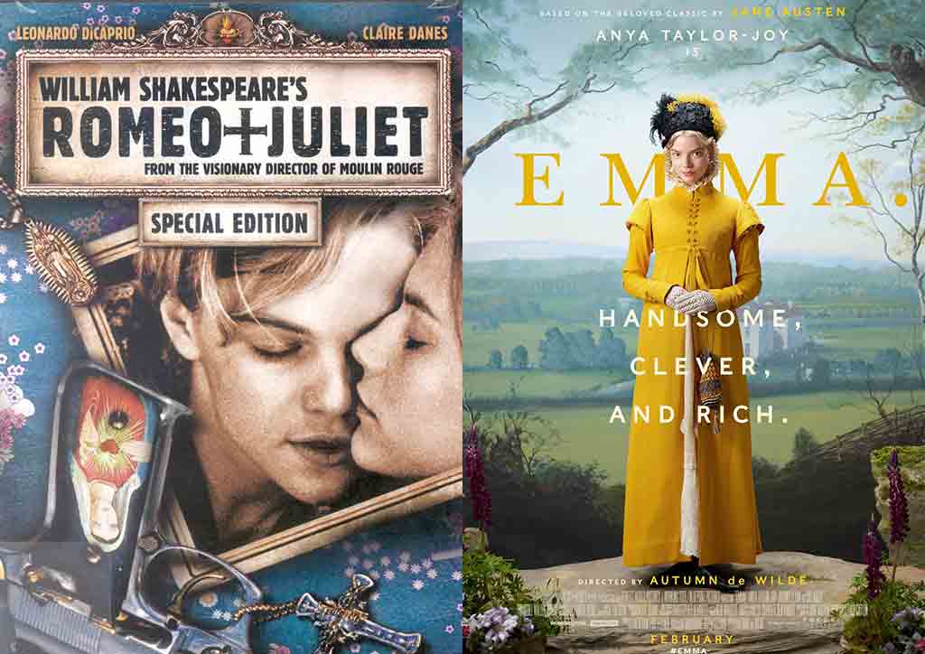Whether one wishes to escape to the pages of Jane Austen to meet the elusive Mr. Darcy character or in the critically-acclaimed pictures of a Merchant Ivory production, period pieces enrich the fantasy of romance and elevate the experience. A cult classic is the Baz Luhrmann cinematic hit, Romeo + Juliet (1996). The doomed tale of star-crossed lovers captivated the hearts of many and further propelled then-rising young actor Leonardo DiCaprio. The creative reimagined Shakespeare masterpiece is a musical and visual delight set in contemporary America, where instead of swords, the warring mafias wielded guns.