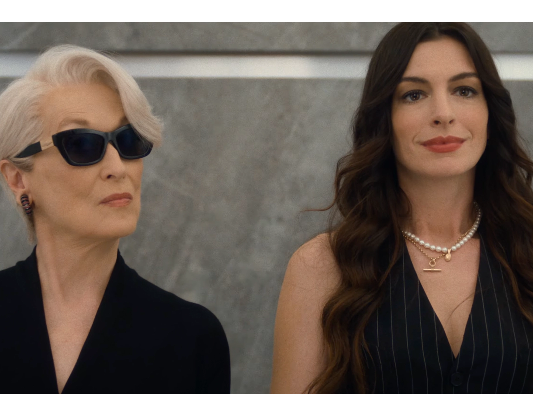 “Took you long enough,” Miranda tells Andy as she puts on her sunglasses.