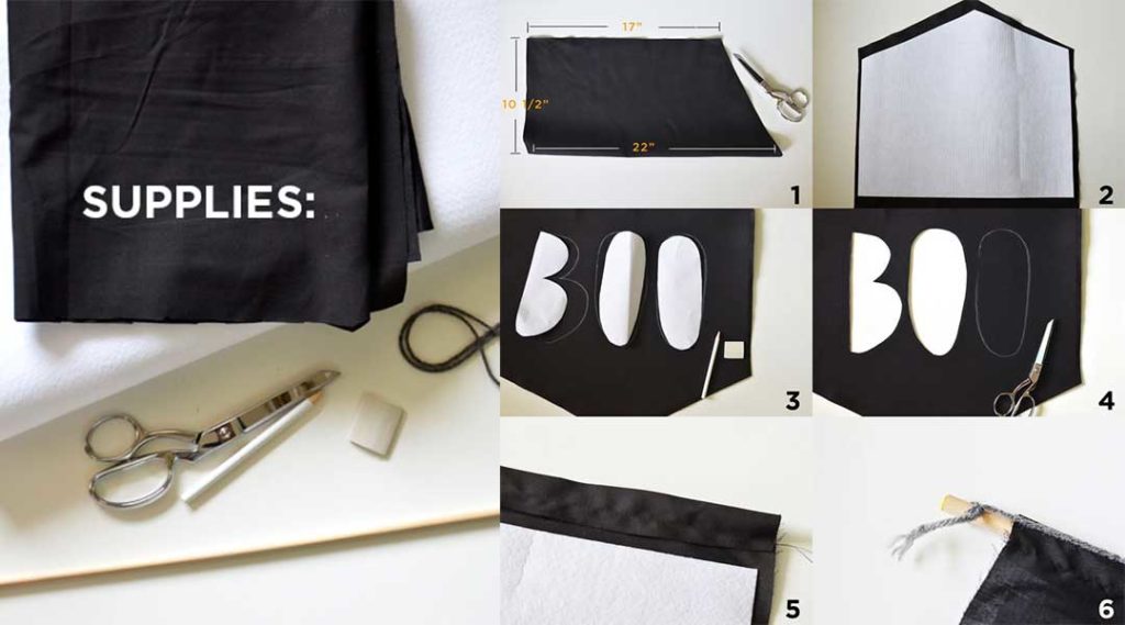 Halloween doesn’t have to be all about pumpkins, green Frankensteins and witches. It can be as simple and understated as the Boo banner from A Beautiful Mess. This banner’s too cool, you might want to leave it on for the rest of the year.
