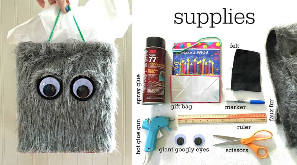Although this cute furry monster tote is giving us major Fendi monster and Anya Hindmarch vibes, it’s also a perfect sack for all that Halloween candy. You’ll need a glue gun, fake fur and giant googly eyes!