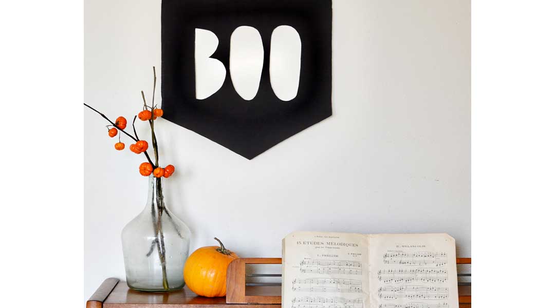 Halloween doesn’t have to be all about pumpkins, green Frankensteins and witches. It can be as simple and understated as the Boo banner from A Beautiful Mess. This banner’s too cool, you might want to leave it on for the rest of the year.