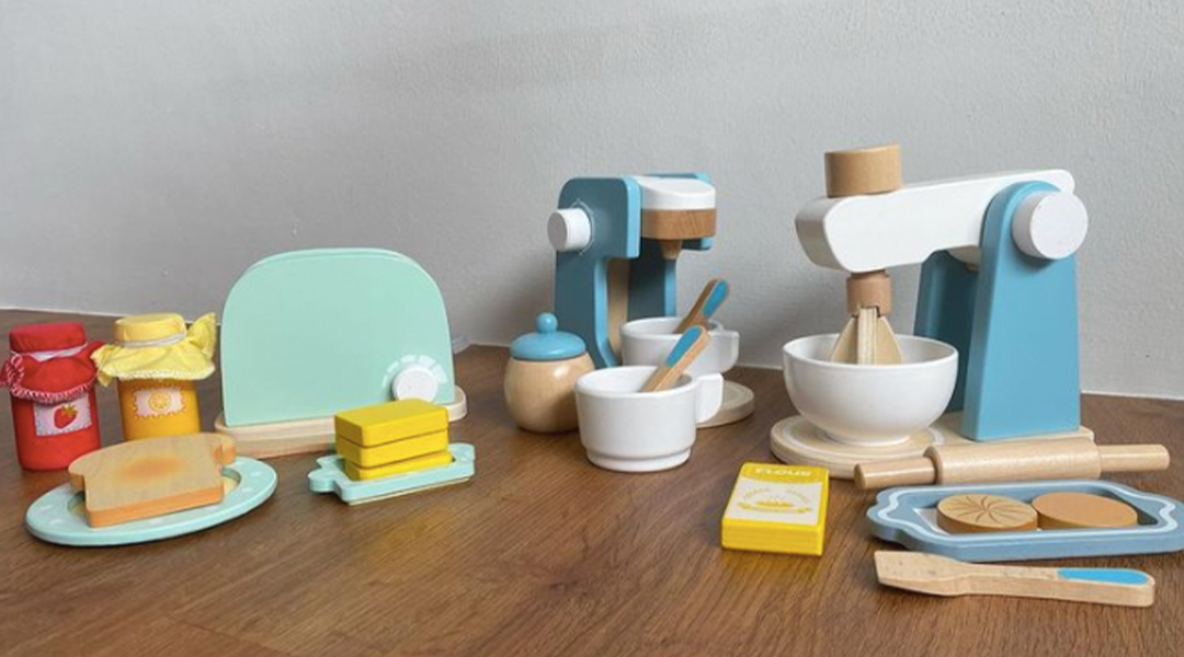 Developed by a speech and language therapist. The toys, made of wood, include a toaster kit, baking kit, coffee machine kit, and a microwave set. They also recently added a new kit – the doctor’s set.