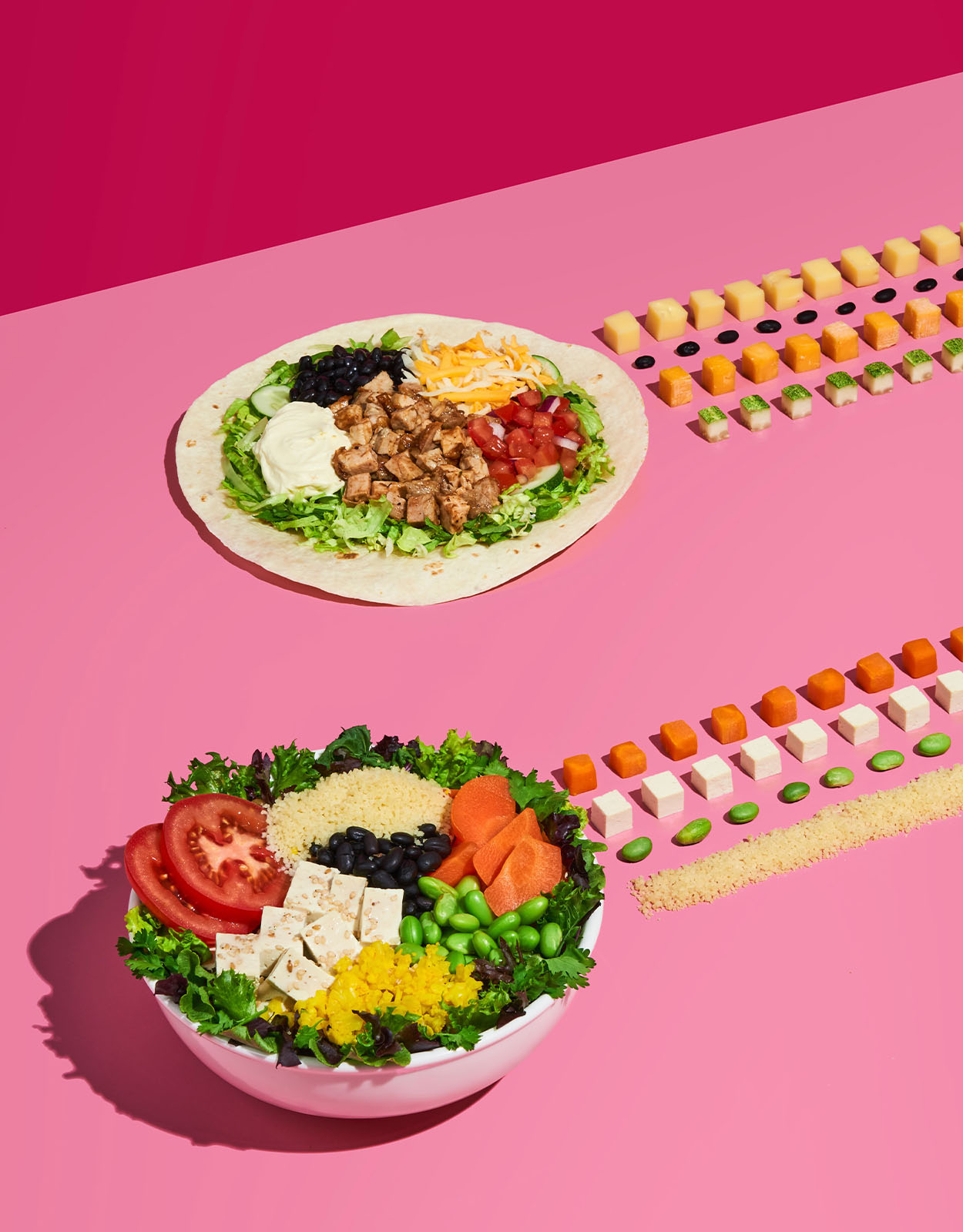 Made with two servings of grains, crisp lettuce, and zesty tomato salsa, The Grain Bowl is complemented by a choice of adobo black beans or buttered corn, paired with succulent grilled chicken or savory beef chili con carne.
