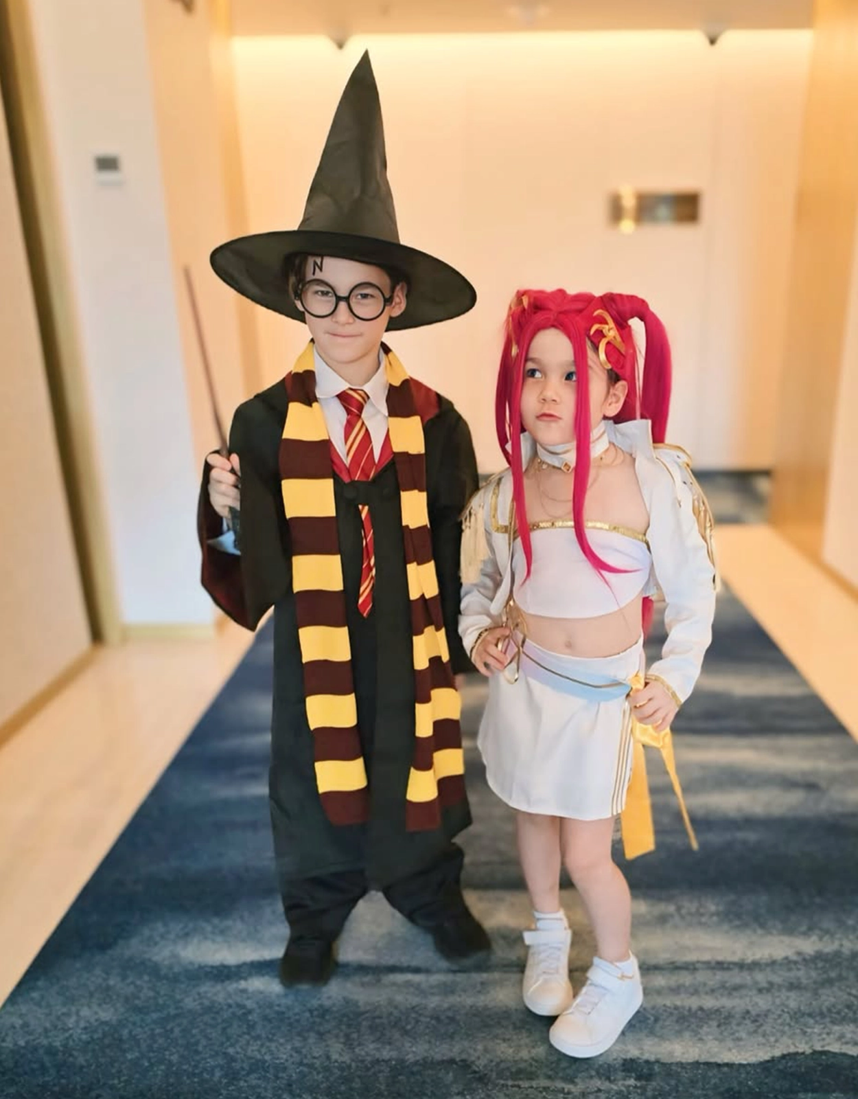 Cristalle Henares and Justin Pitt’s kids went as Harry Potter and Mira from KPop Demon Hunters for their village trick-or-treat.