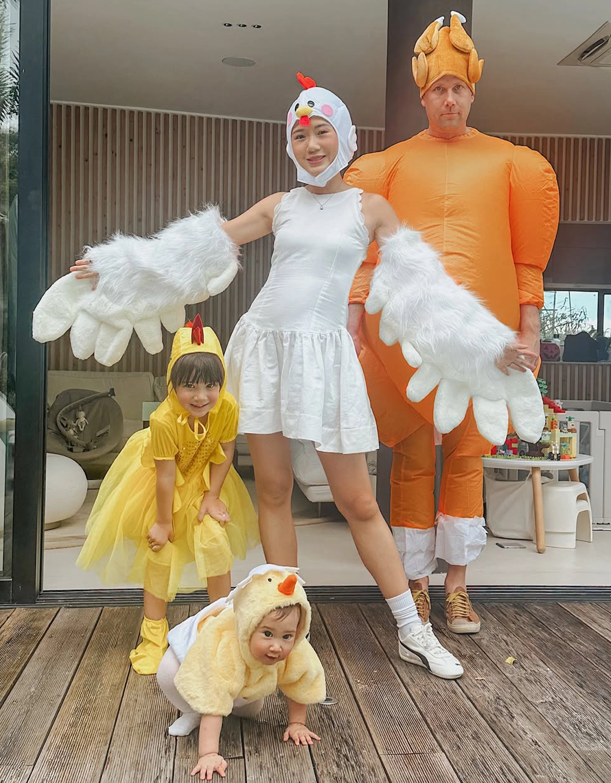 The Co-Koro family opted to dress up as an adorable family of chickens.