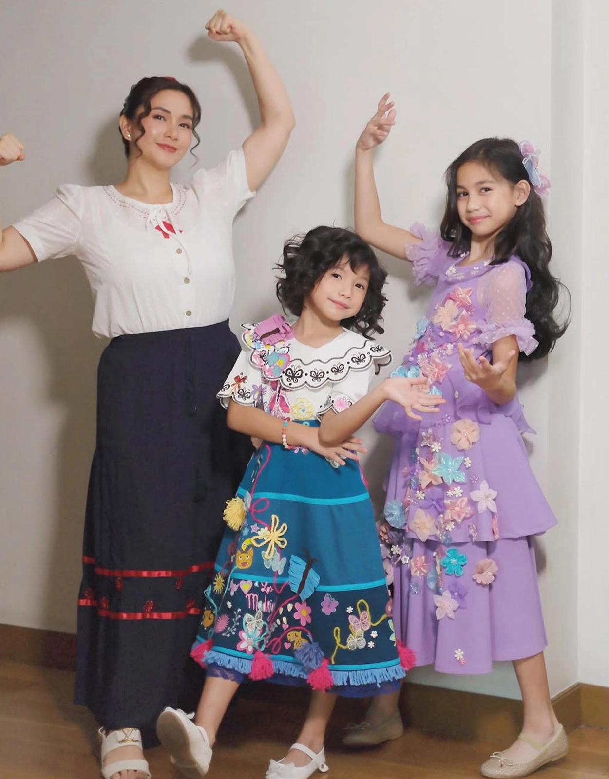 Mariel Padilla and her daughters, Gabriela and Isabella, dressed up as the Madrigal sisters from Encanto.
