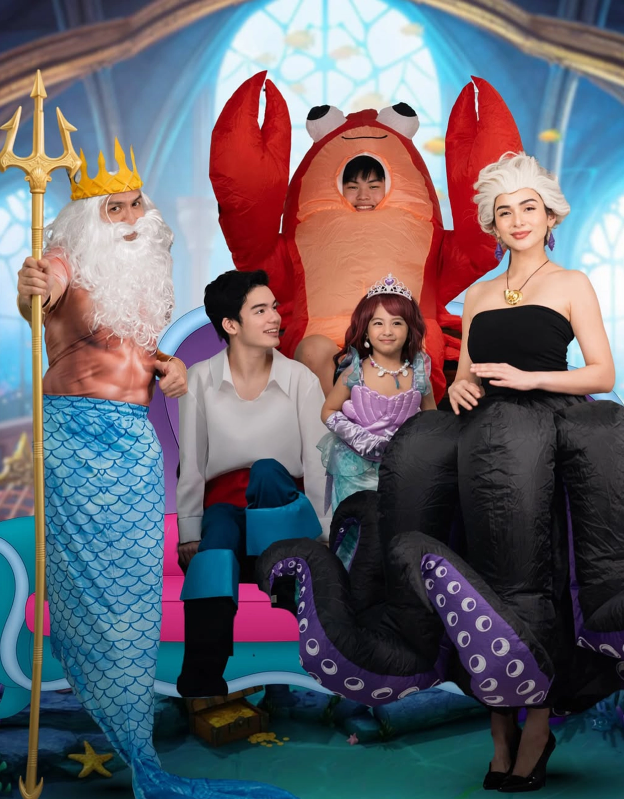 DenJen took a break from taping their teleserye to dress up as characters from The Little Mermaid with their kids, Calix, Alex Jazz, and Dylan.