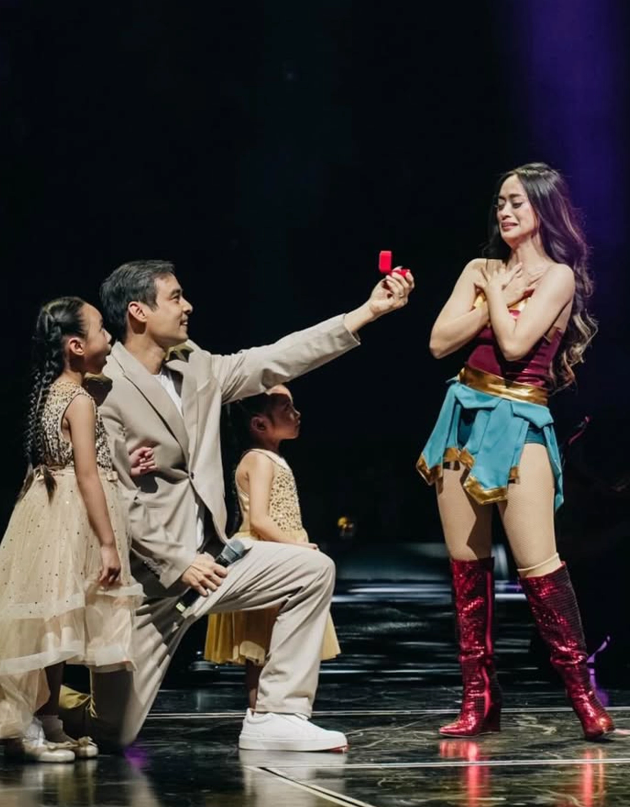 The proposal happened onstage during the Sexbomb Dancers’ reunion concert at the Mall of Asia Arena, in front of thousands of fans.