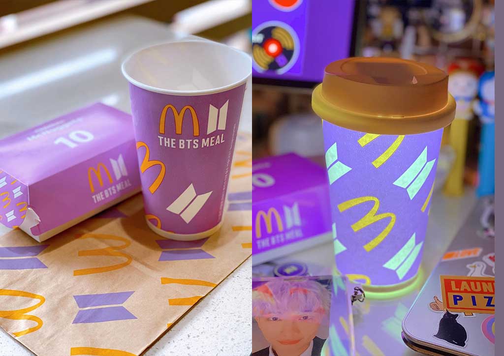 But according to ARMY, it’s not even about the meal itself. It’s the merch that makes it so special. Yup, it’s that pretty pink and purple packaging and BTS logo that people can’t get enough of. And yes, the fact that it’s endorsed by the Bangtan Boys themselves. In fact, some have turned the McDonald’s BTS merch into works of art: