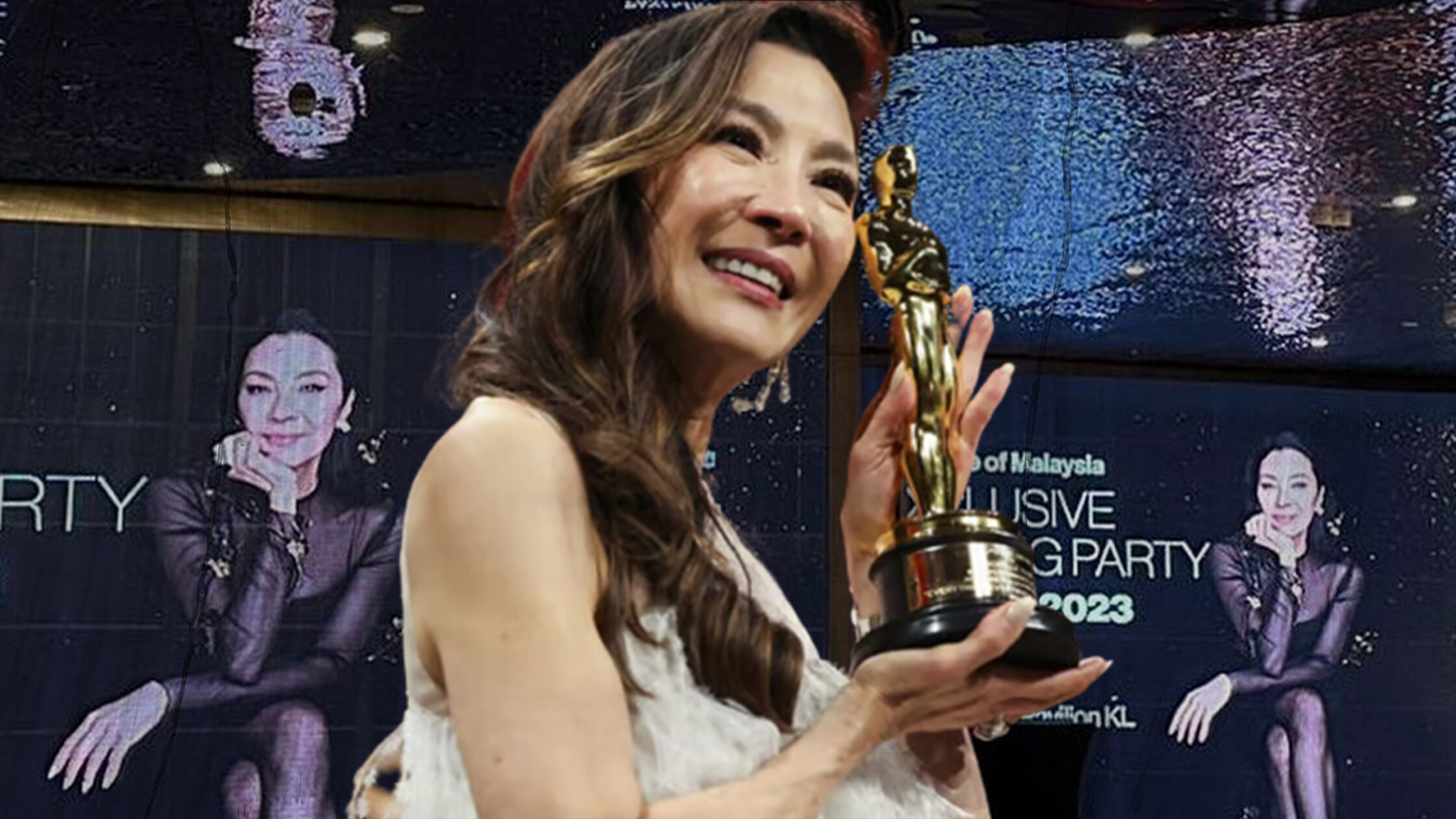 Michelle Yeoh’s win as the first Asian Actress in a leading role was not just celebrated at the Dolby Theatre in Los Angeles. Thousands of miles in Malaysia, family and friends gathered in Kuala Lumpur to cheer as she went up on stage to take her Oscar.
