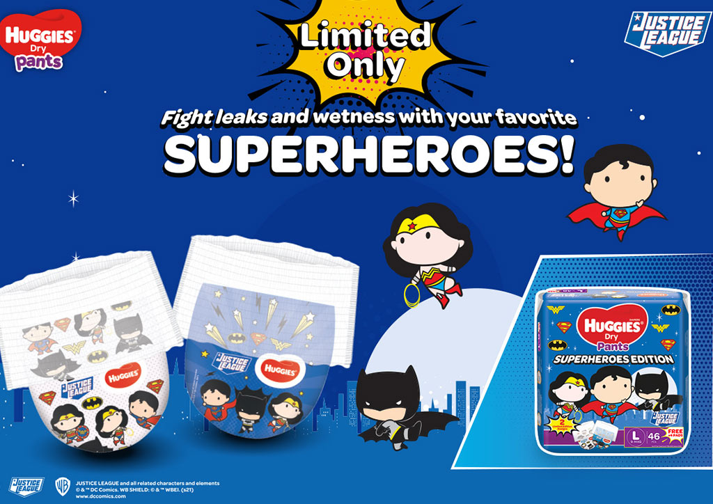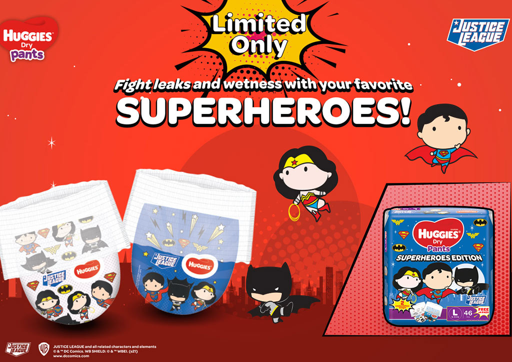 Since babies are always on the go, having pampers that stretch or conform to their every movement will make sure nothing stops them on their quest to explore (or save the world). But they can’t fight alone; that’s what the Justice League is for. And if they want to fly with them, they’ll need their Justice League Edition Dry Pants. There are different designs from Superman, Batman, and the ever amazing Wonderwoman.