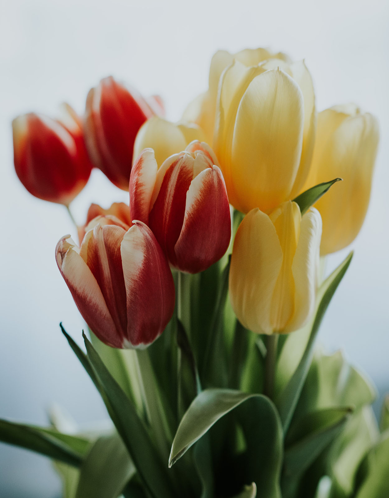 Tulips often come in different colors like red, pink, and even yellow.