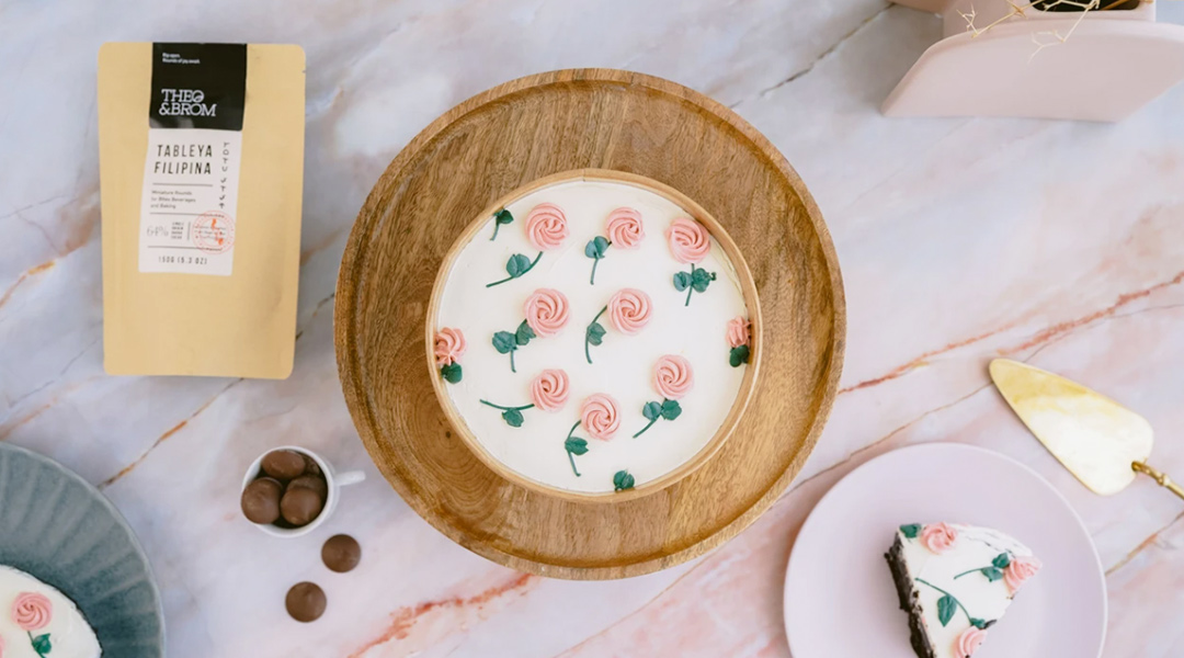Theo & Brom have been making waves as one of the very first Belgian Tableya chocolate cakes. They often sold it in tubs and with every slice, you’ll see some fudge pouring out of the cake. Each bite is not too sweet but you can tell that they didn’t skimp on the chocolate. But this is for Mother’s Day. We can’t just get a plain cake for her now can we? Neither do we just get a plain chocolate cake and decorate it with fake flowers and call it a day!