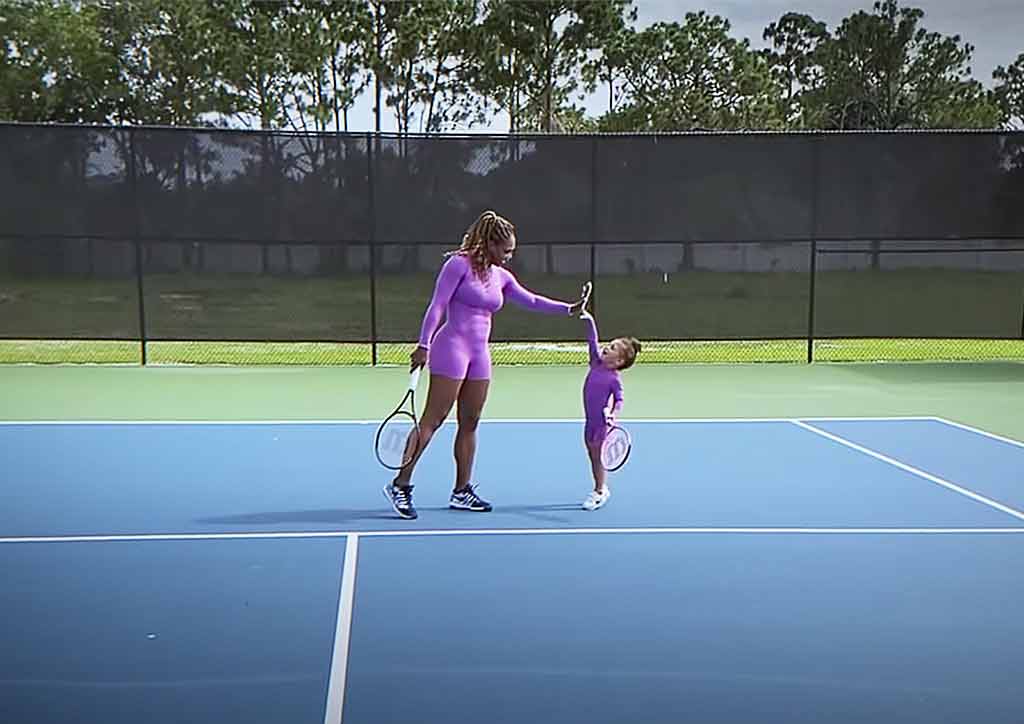 In the ad, you’ll spot Serena Williams with her daughter Olympia, USWNT soccer player Alex Morgan in all her pregnant glory, and track stars Shelly-Ann Fraser-Pryce, Perri Shakes-Drayton, Nia Ali. and Bianca Williams.