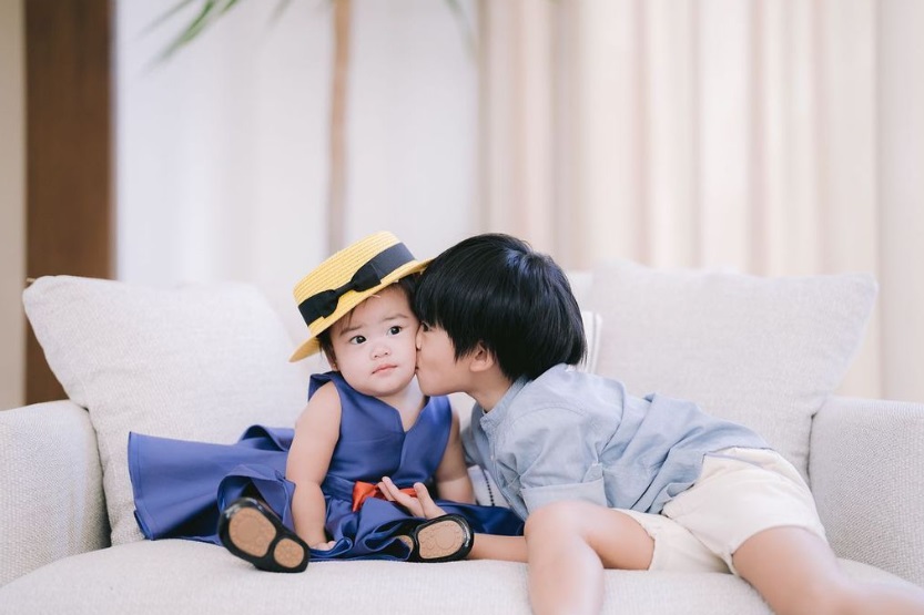 Although she looked confused, we’re sure that Madeline will eventually appreciate that her brother, Finn, gave her a birthday kiss.