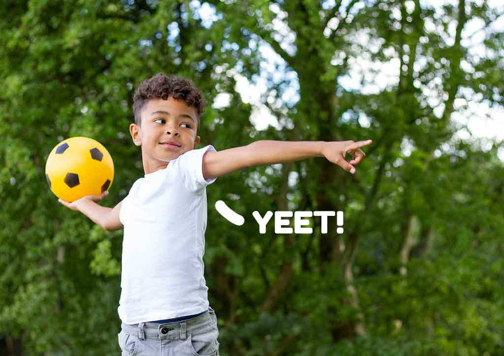 Yeet used to be an exclamation for a good thing back in 2008. It came from an old Youtube vine which depicts throwing something. Nowadays, it’s loosely used to describe “throwing” something. So, if you hear your kids saying “ya-yeet!”, that means they’re preparing to throw something.