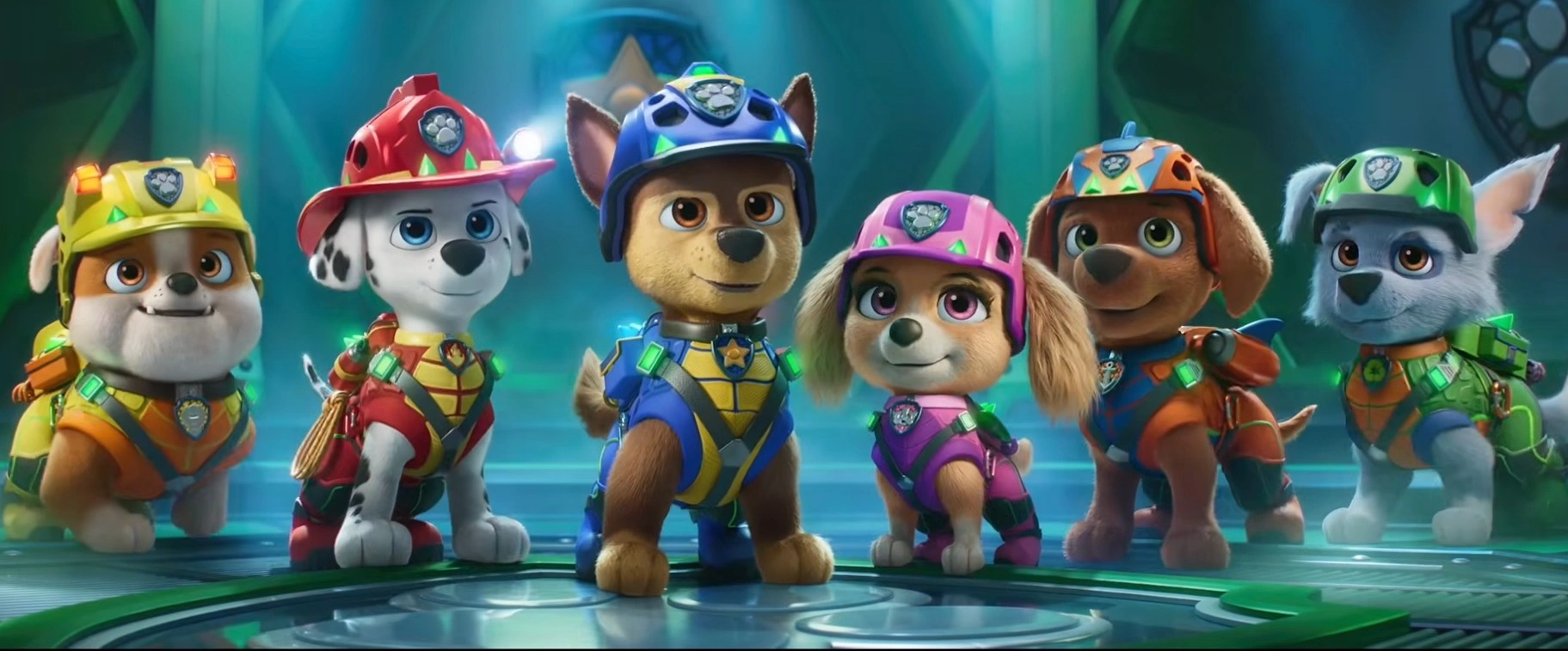 The film features Ryder and the core pups—Chase, Marshall, Skye, Rocky, Rubble, and Zuma—along with Rex and their rival Mayor Humdinger.