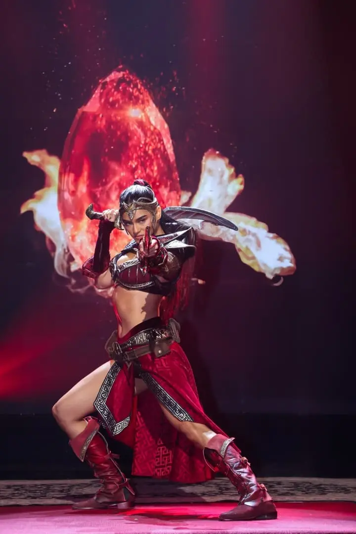 Mitena is the main antagonist in Sang’gre. She is the twin sister of Cassiopeia, who wants revenge on Encantadia after her father Memen, banished her. She became Kera (queen) of Mine-a-ve after killing the beast Arsus and, through the Esperanto, was granted powers. Throughout the series, she dons various garbs, including her striking warrior ensemble.