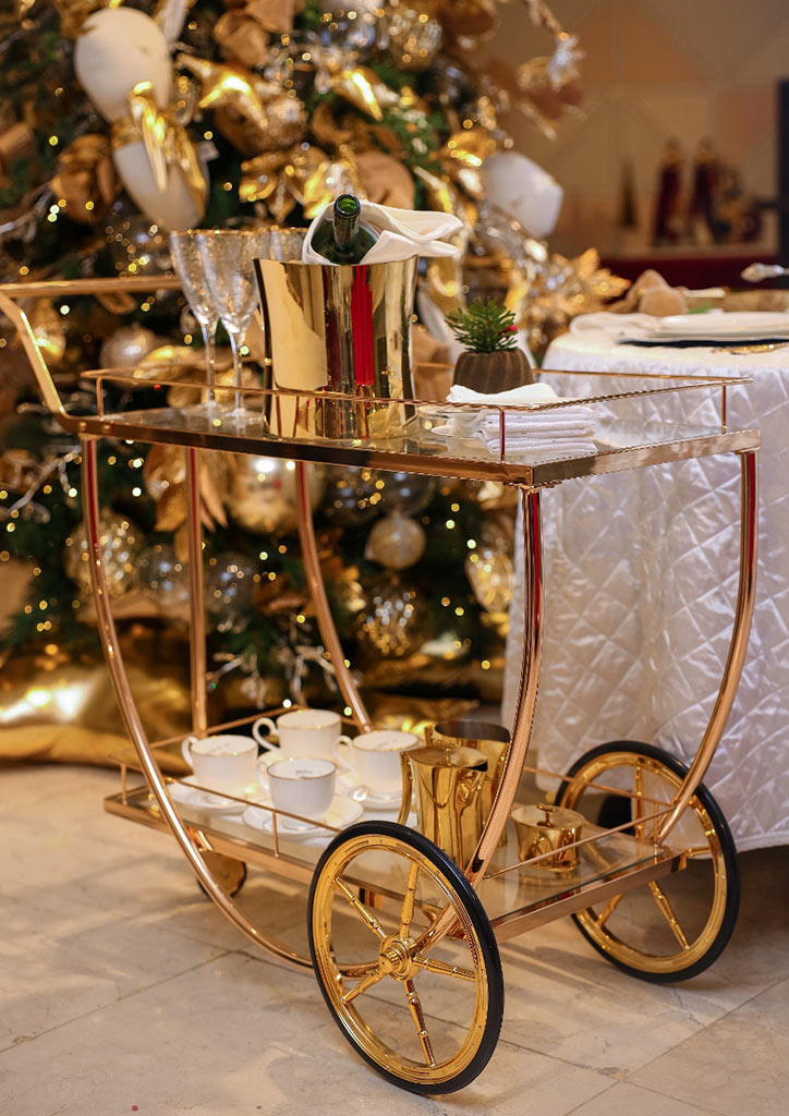 Sparkle up your dining room with an eye-catching table setting. Rustan’s provides beautifully crafted dining accessories in glimmering gold, red and white, and winter natural setting that can surely complement your chosen theme for your holiday home. Boost your dining room’s cozy factor by showcasing Rustan’s bar cart in glimmering gold as you enjoy a refreshing drink to cheers for the wonderful season ahead.