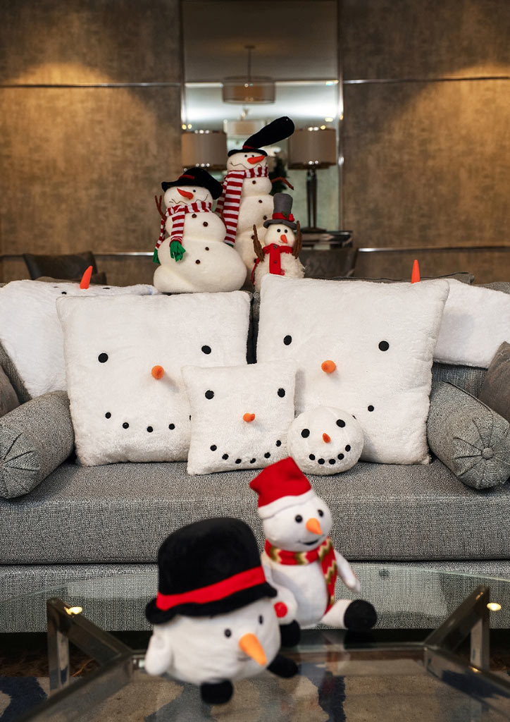 Make it more festive with Nativity figurines for a Bethlehem-approved look. If you opt for a Winter Wonderland theme, Rustan’s Snowman collection featuring accent pillows and