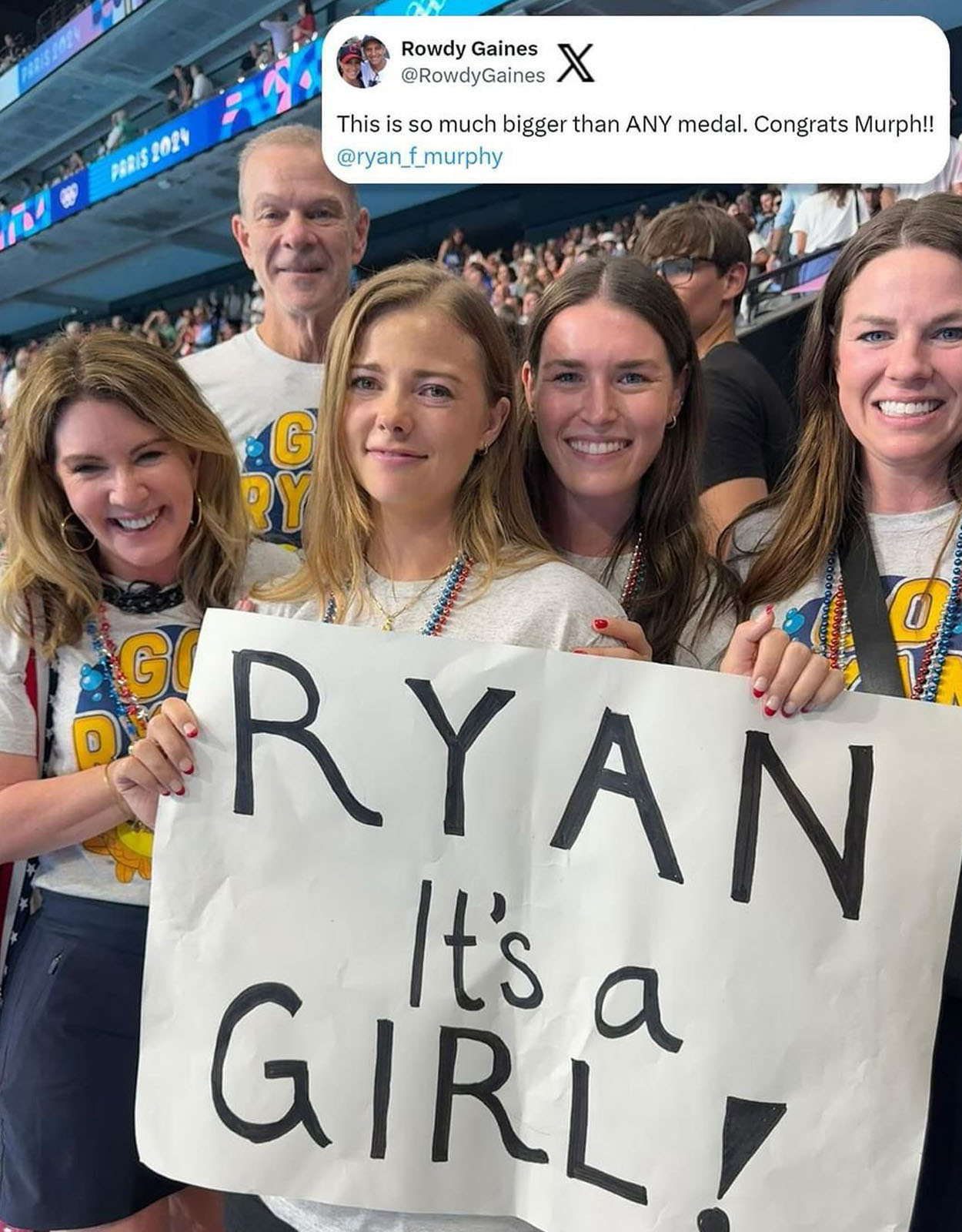 Former 3-time Olympic swimmer and dad of four, Rowdy Gaines, joined in congratulating Ryan. “This is so much bigger than any medal! Congrats, Murph!”