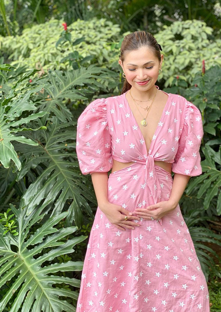 Hinhin Founder Tricia Gosingtian documented her pregnancy journey with florals and dainty dresses. In an Instagram post, she shared that something as simple as documenting her pregnancy OOTDS has been helping a lot with her self-image. “Dressing up (and showing up!) became a challenge that I looked forward to every week, and seeing my body transform everyday normalized change. It made me feel like I can take on anything and everything,” she captioned. Tricia gave birth to son Leo in April 2020.