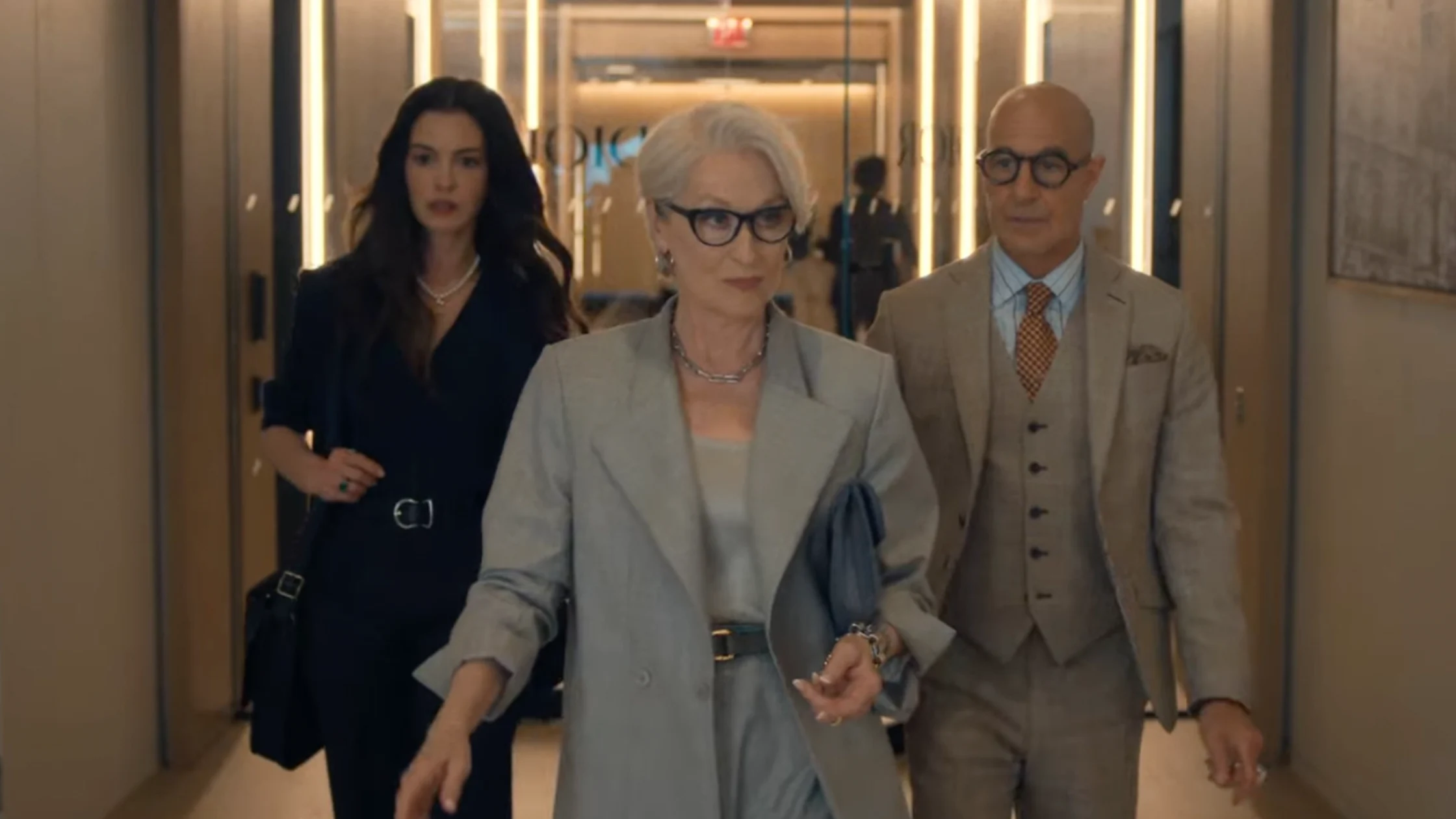 The trailer opens with a familiar voice: Nigel (Stanley Tucci), narrating Runway magazine’s cultural dominance—because if anyone gets to explain fashion’s chokehold on society, it’s him.