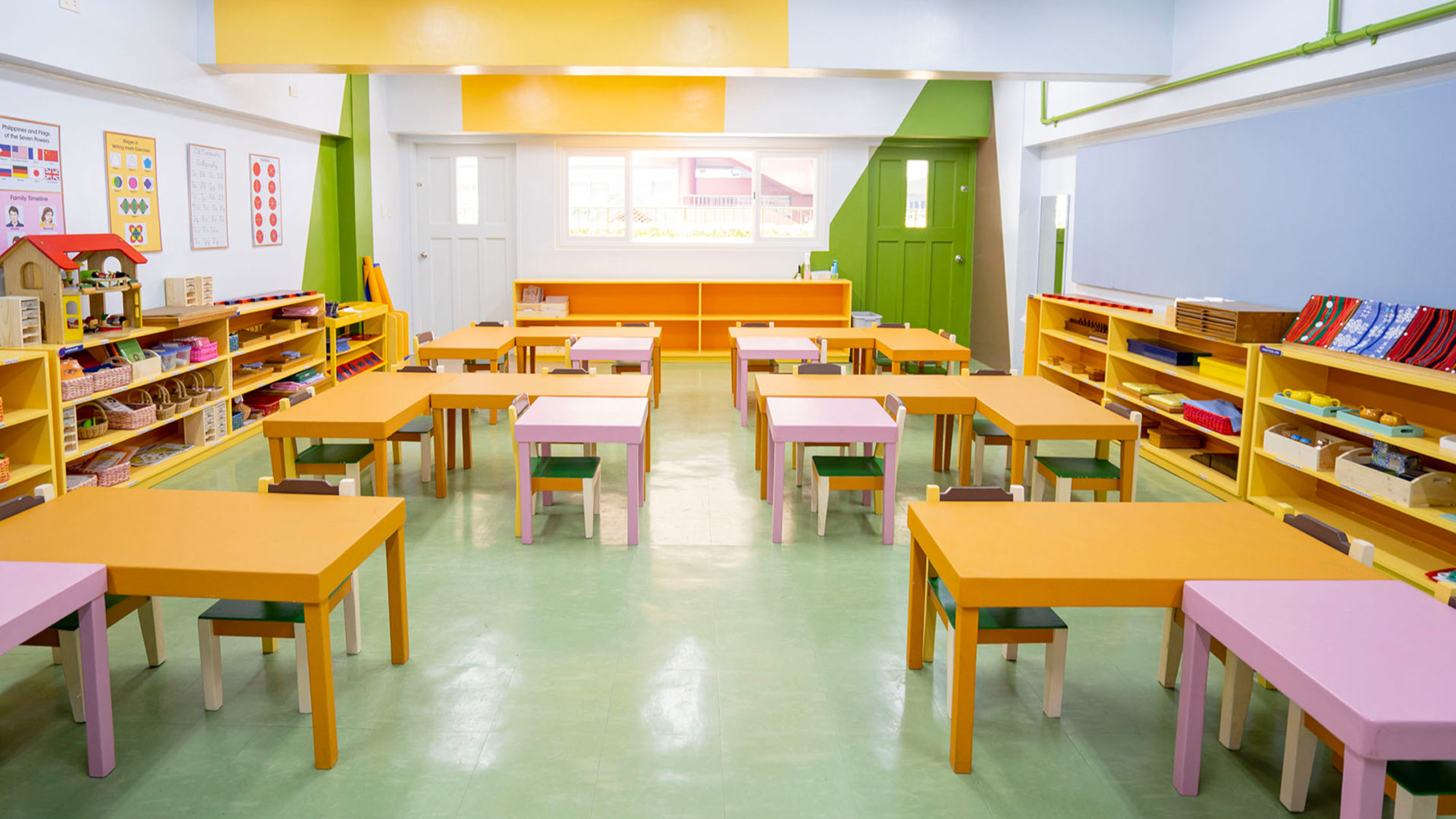 But one of the usual concerns of a parent may be how do these designs not distract their children from studying? By using minimalist but bright colors, OB Montessori lit up the halls of the school and changed the dreary mood of learning into something more enjoyable. From the cafeteria to even the classrooms, the designs vary depending on the grade. “We felt we needed to improve the ‘vibe’ so that when the students return, they are welcomed with happy, exciting, and energizing spaces. Our immediate goal was to create an environment that would welcome students to a new chapter in their lives,” shares COO of OB Montessori Sara Soliven-De Guzman.