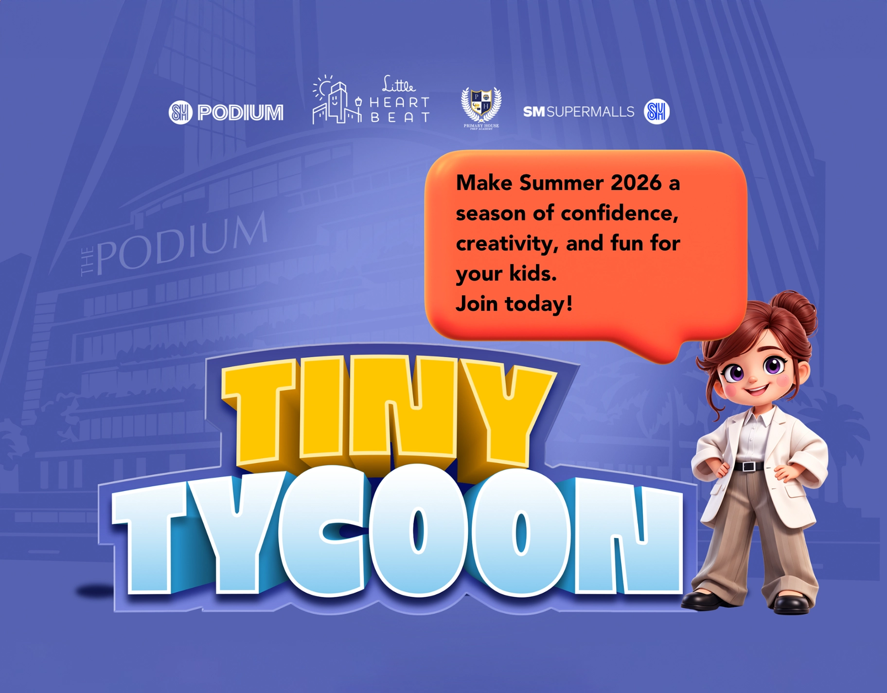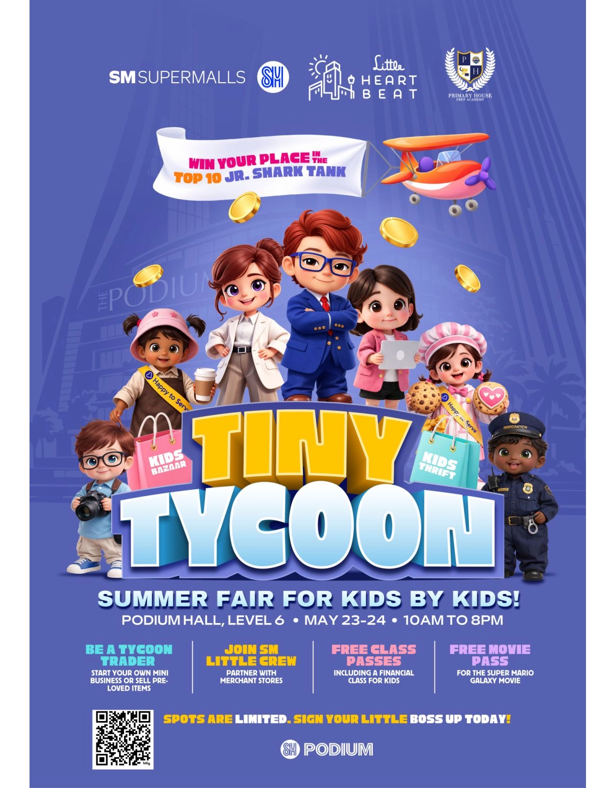Tiny Tycoon is a kids’ entrepreneurship summit organized by Little Heartbeat and Primary School in partnership with SM Supermalls. The event allows children to run their own mini-businesses, meet entrepreneurs, and learn practical skills such as financial literacy and public speaking.
