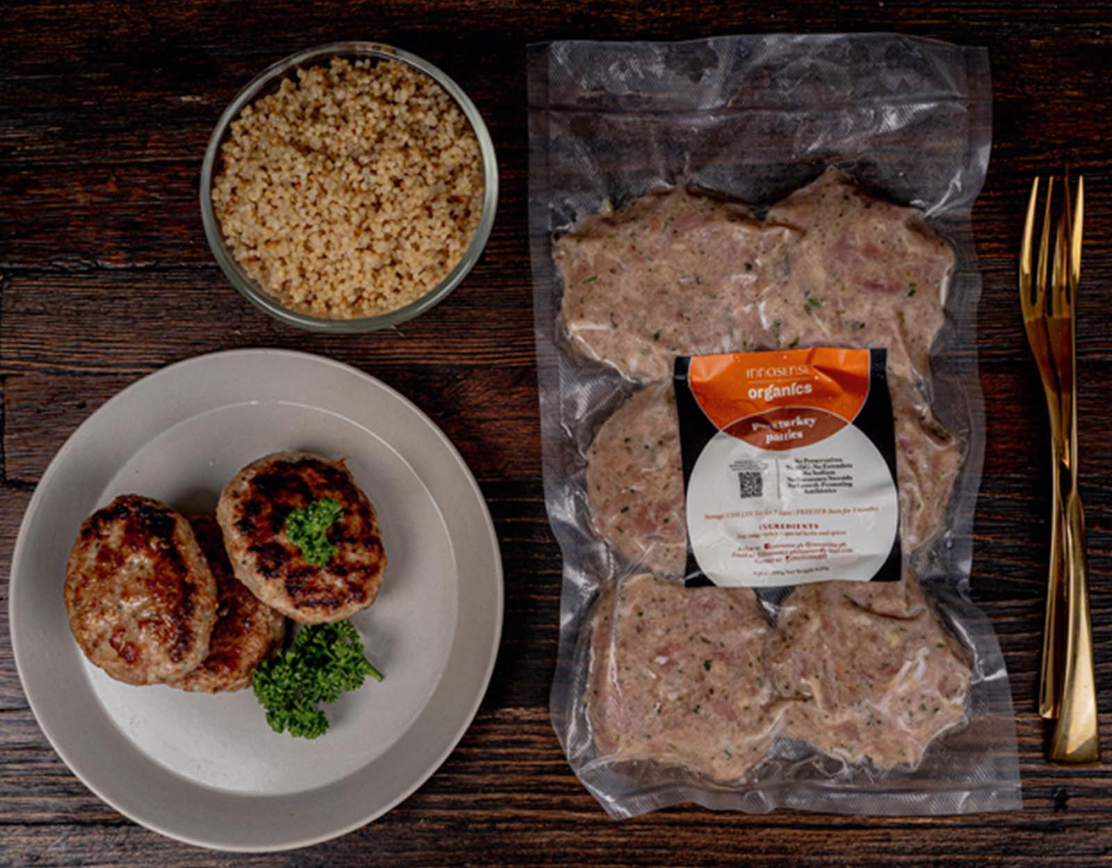 Innosense has frozen items such as free-range tapa, chicken broth, turkey patties, etc., which are all organic. They also have fresh beverages that are made daily, such as red juice made with beets, green juice made with kale, and yellow juice made with ginger and lemons. Innosense also carries pure organic wild honey and pancake mix.