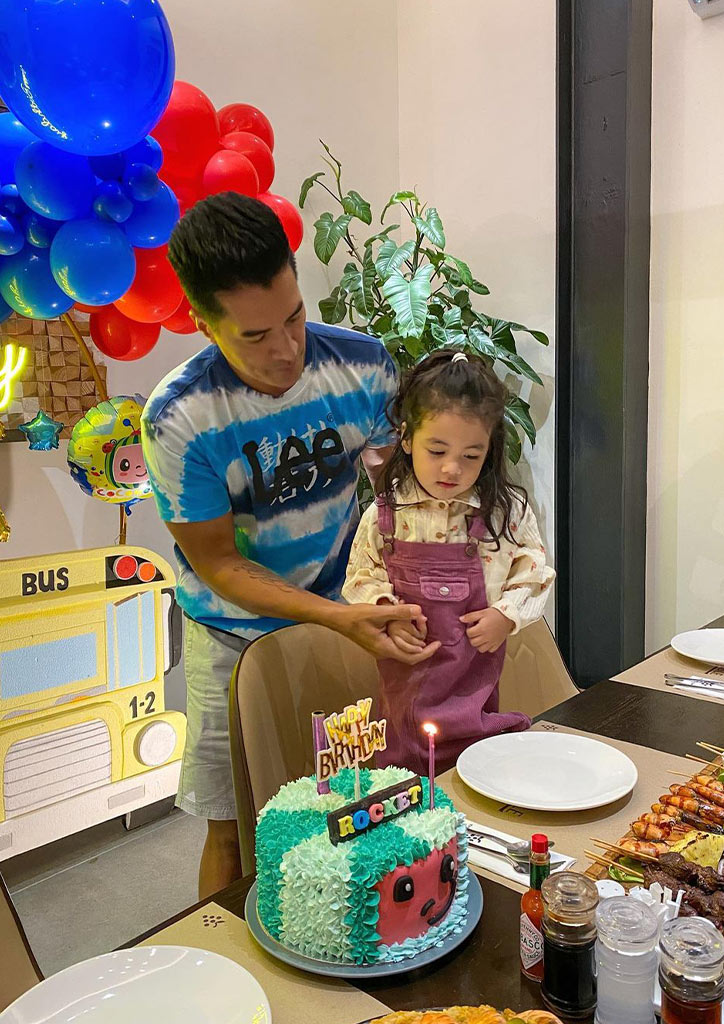Troy also posted some photos saying: ” I hope you enjoyed your 3rd Birthday party my @rocketmiller01. We had a great week here in @thevineyardattanauan the kids really loved it. Special shoutout to the Vineyard staff for the Cocomelon themed Birthday dinner, cheers!”