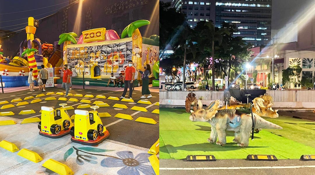 Araneta Fiesta Park is an outdoor attraction that has a wide range of activities kids and their parents can do. They can head over to the inflatables, jump at the mini trampolines, or ride bump cars and the train. Moreover, they can enjoy riding the walking dino or have fun at the Jurassic Adventure.
